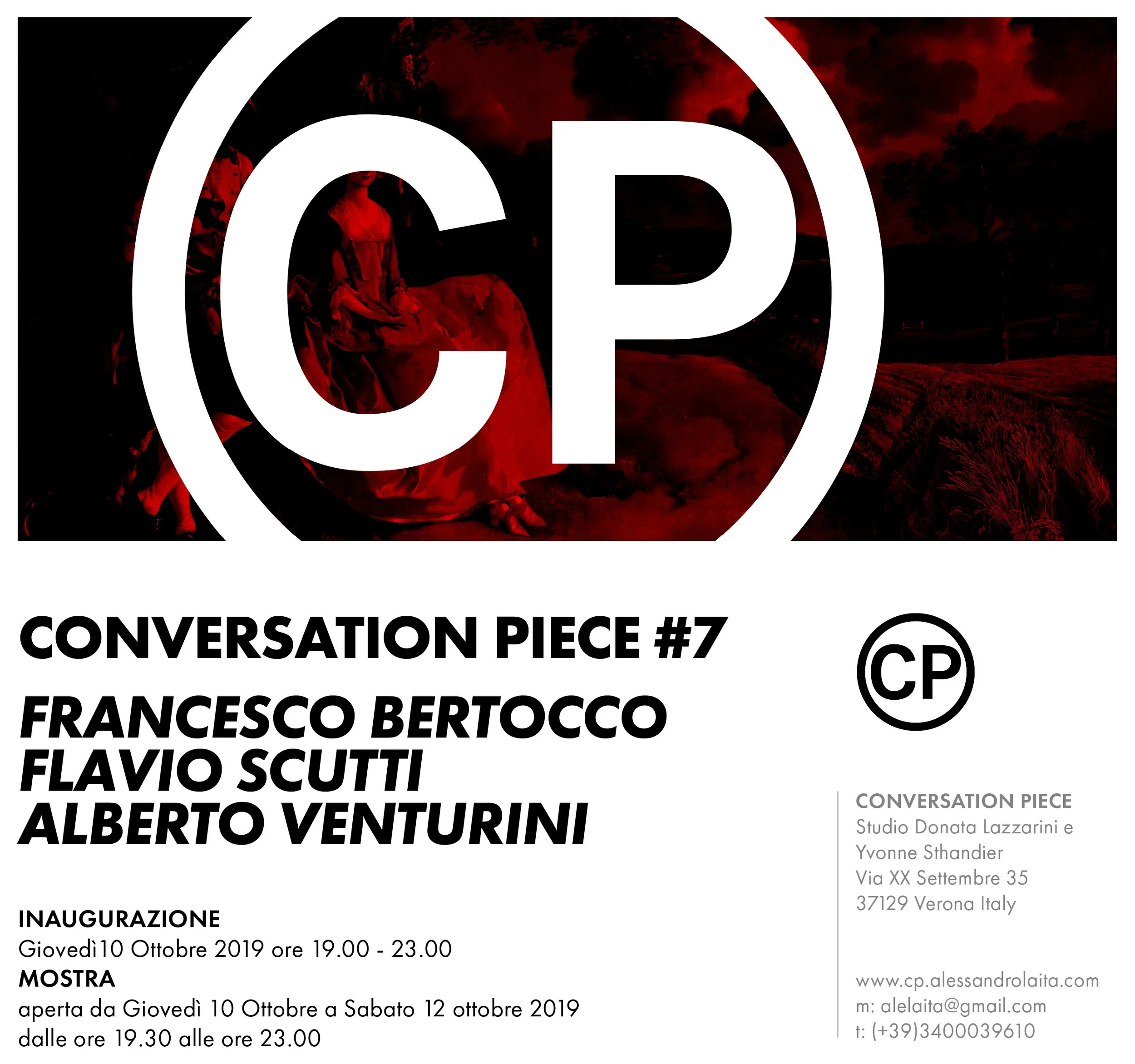 Dal 10 al 12 ottobre 2019, Conversation Piece #7 porta a Verona, fuori fiera ArtVerona, i lavori di Francesco Bertocco, Flavio Scutti e Alberto Venturini.