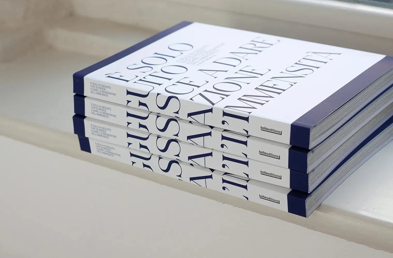 È solo in seguito che si riesce a dare la sensazione dell’immensità documenta attraverso testi critici e immagini i progetti che hanno abitato le sale della casa-studio di Corso Garibaldi 2, restituendo la ricchezza di un programma che ha saputo accogliere artisti affermati e giovani autori, in dialogo con l’identità del luogo e con la memoria del pittore Renzo Bongiovanni Radice.